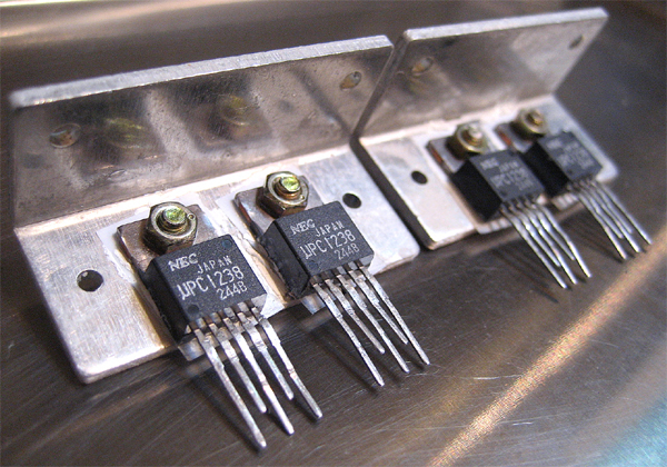 未使用ですがヒートシンクが取り付けられています(uPC1238V・2個に対して1枚)