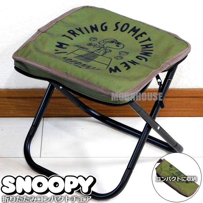 - 送料無料 スヌーピー 折りたたみ コンパクトチェア 折りたたみスツール 折りたたみ椅子 コンパクト ポータブルチェア 新品 カーキ□