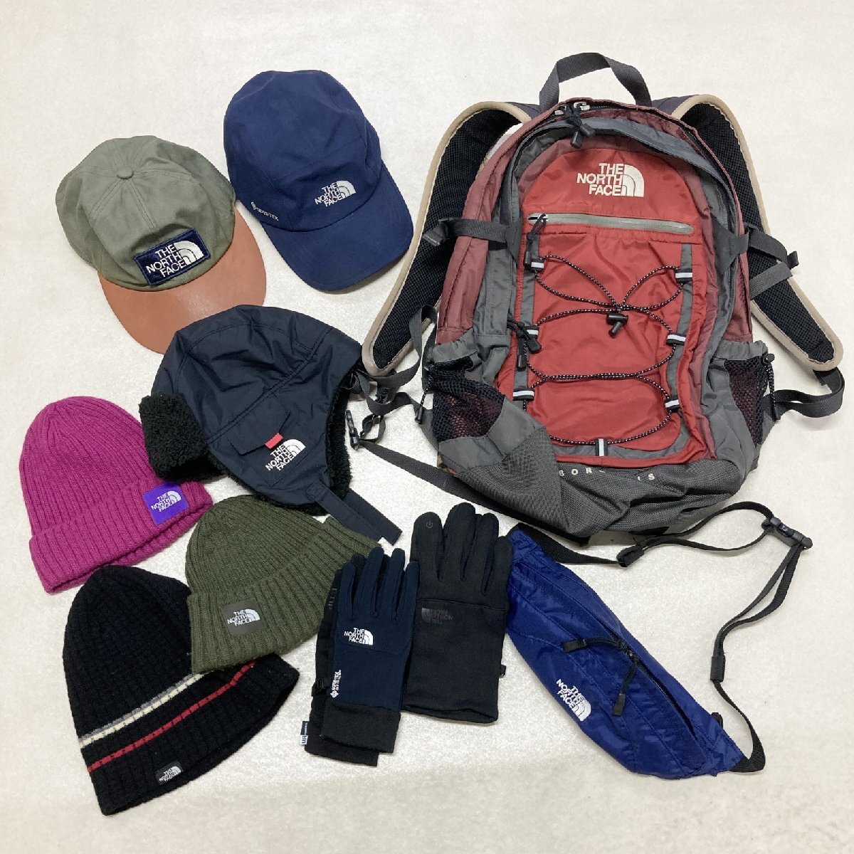 - ● THE NORTH FACE ザ・ノースフェイス 10点 まとめ バックパッカー リュック ウエストポーチ ニット帽 グローブ 手袋 アウトドア 1.62kg
