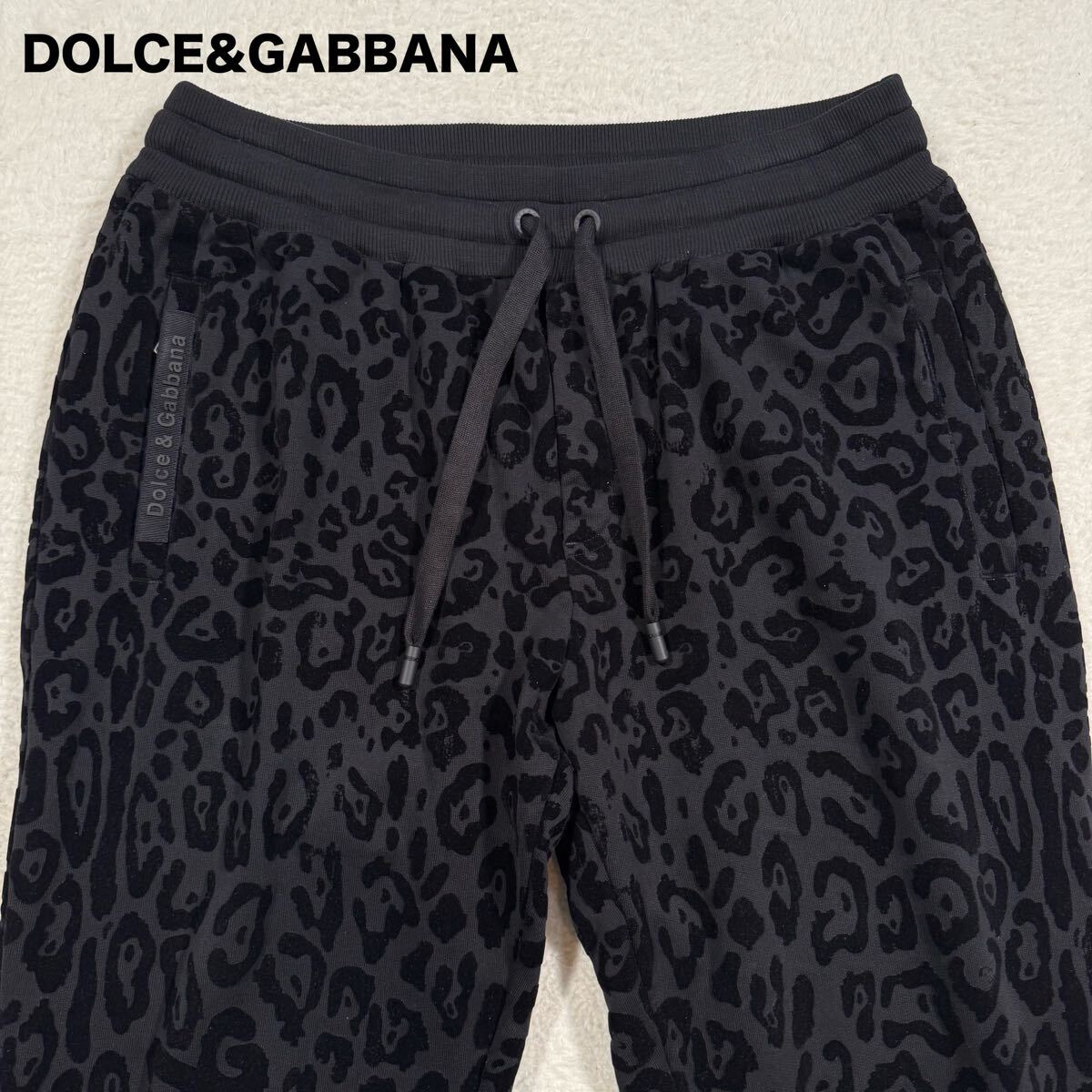 > 美品 メンズXL DOLCE&GABBANA ドルチェアンドガッバーナ ドルガバ ジョガーパンツ レオパード柄 ヒョウ柄 豹柄 ブランドロゴ ブラック 黒