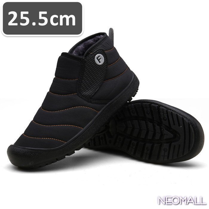 > ユニセックス スノーシューズ 【869】 25.5cm ブラック ムートンブーツ スニーカー ウィンターブーツ 裏起毛 防水 防寒 防滑 冬用靴 綿靴