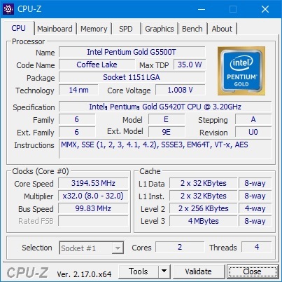 - INTEL Pentium Gold G5420T (3.20 GHz) LGA1151 Coffee Lake 中古正常品