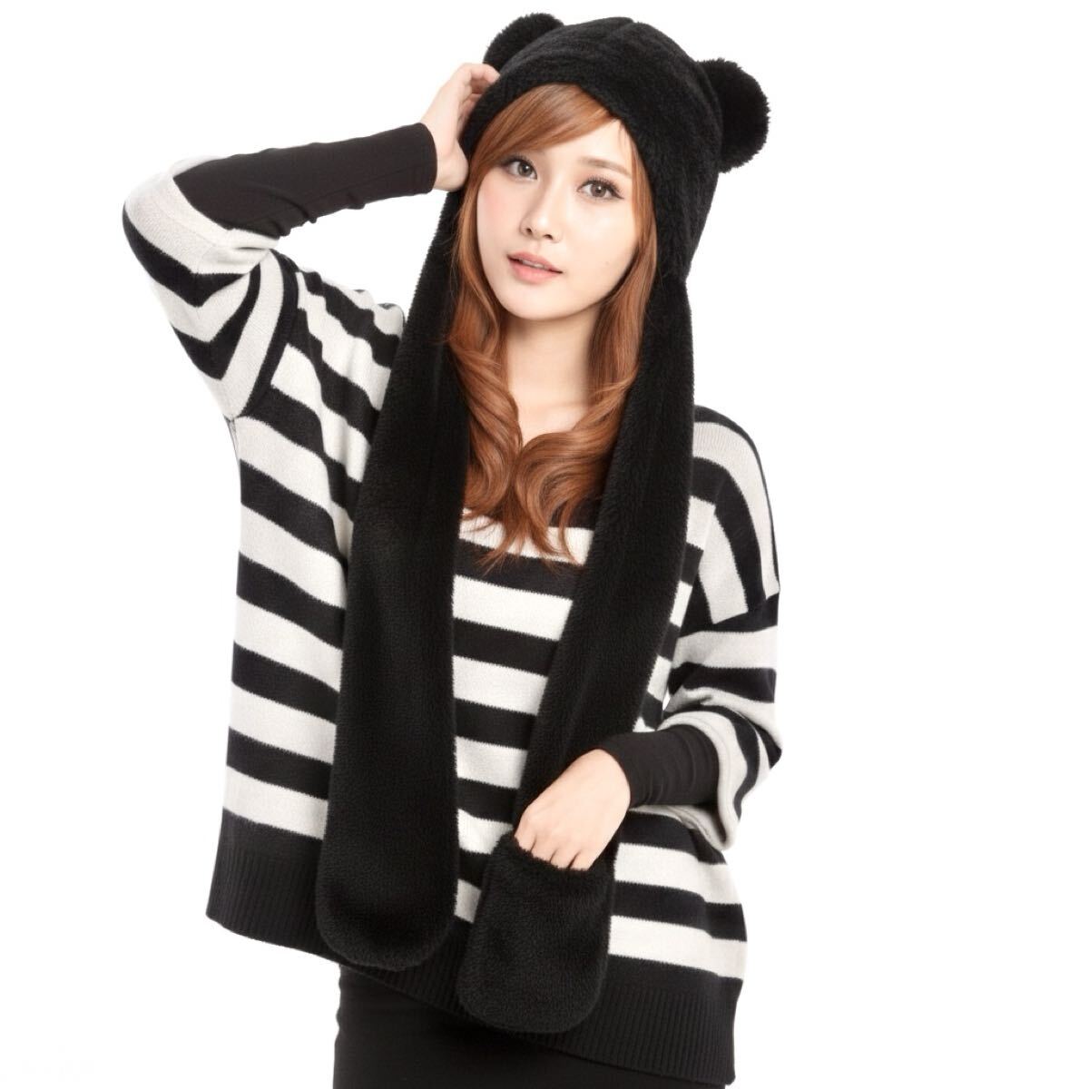 - クマ耳 ロングマフラー フードマフラー 手袋 帽子 マフラー くま 大人