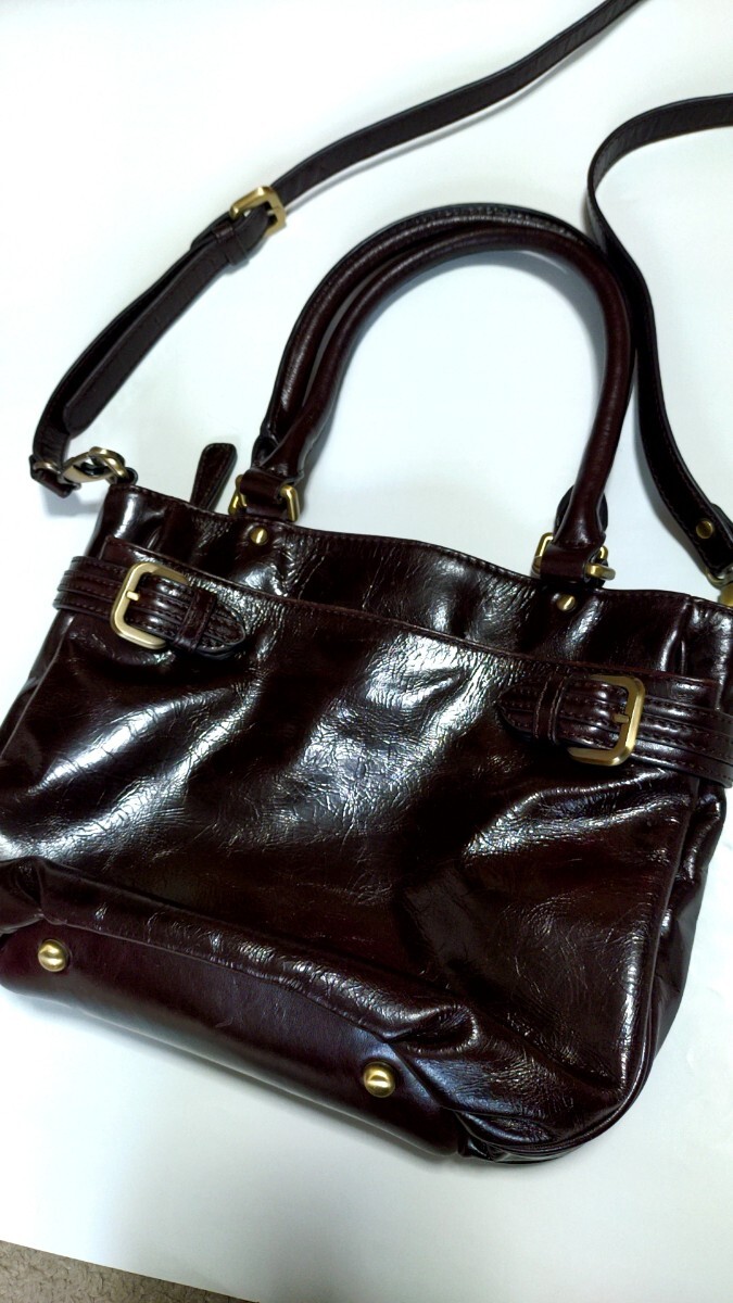 - ★MICHEL KLEIN★ミッシェルクラン★ダークブラウン ハンドバッグ ストラップ付★牛革★MK★