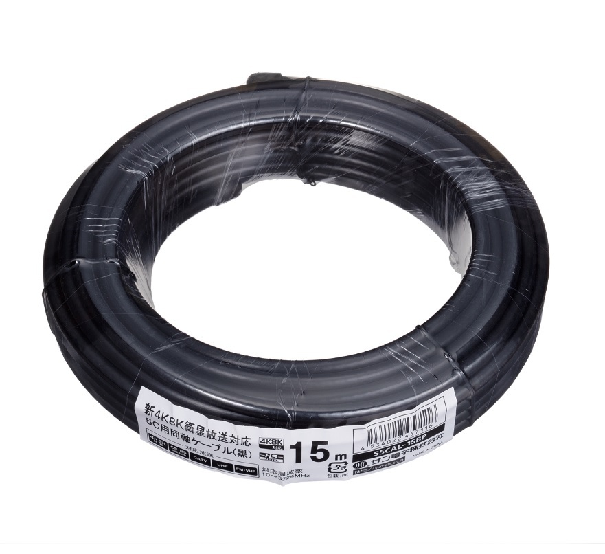 - サン電子 5C用同軸ケーブル15m 4K8K/地デジ/BSCS/CATV対応 黒