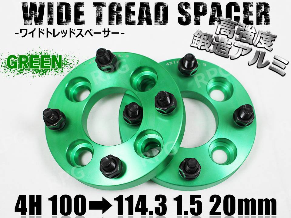- 4H100114.3変換 ワイドトレッドスペーサー 2枚組 1.5 20mm 緑