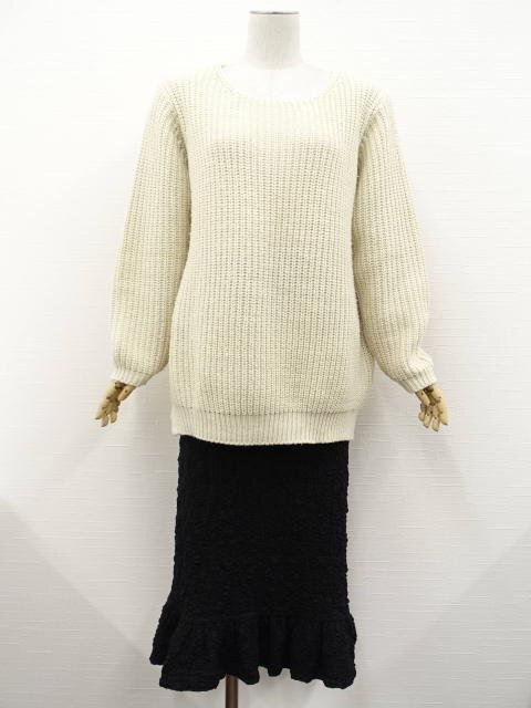 > 美品 M.deux等 長袖 ニットカットソー+ロング丈 マーメイドスカート コーディネート2点セット M相当 アイボリー/黒 フェミニン系 30代~40代