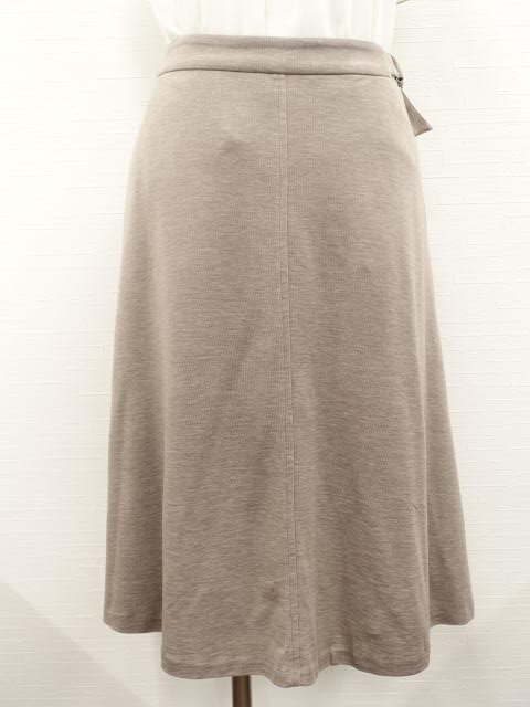 > 美品 ジェイプレス J.PRESS ひざ丈 洗えるフレアスカート 9 ベージュ杢