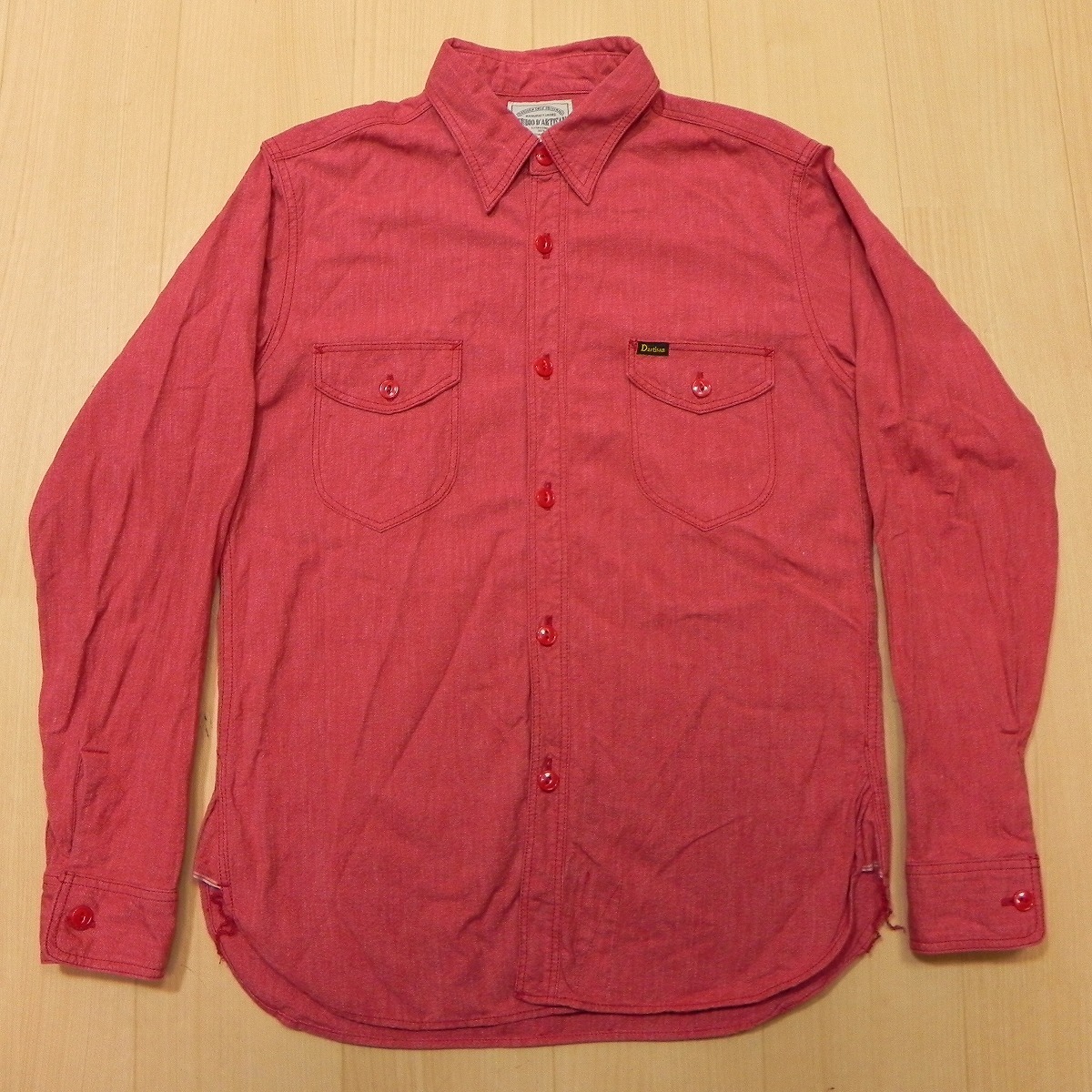 - ★ STUDIO D'ARTISAN スタジオダルチザン 赤系 長袖 シャンブレーシャツ L ワークシャツ 5444 レッド系 古着 ★b