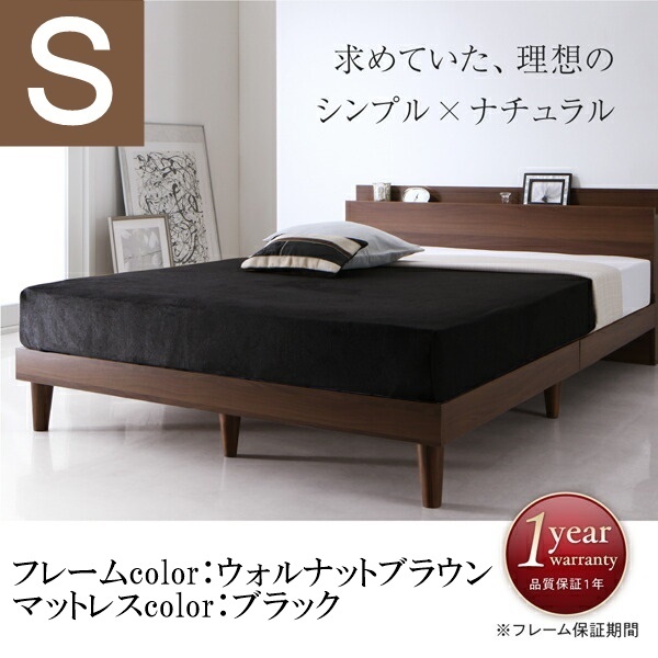 - 棚・コンセント付きデザインすのこベッド Camille カミーユ スタンダードボンネル付 シングル ウォルナットブラウン×ブラック