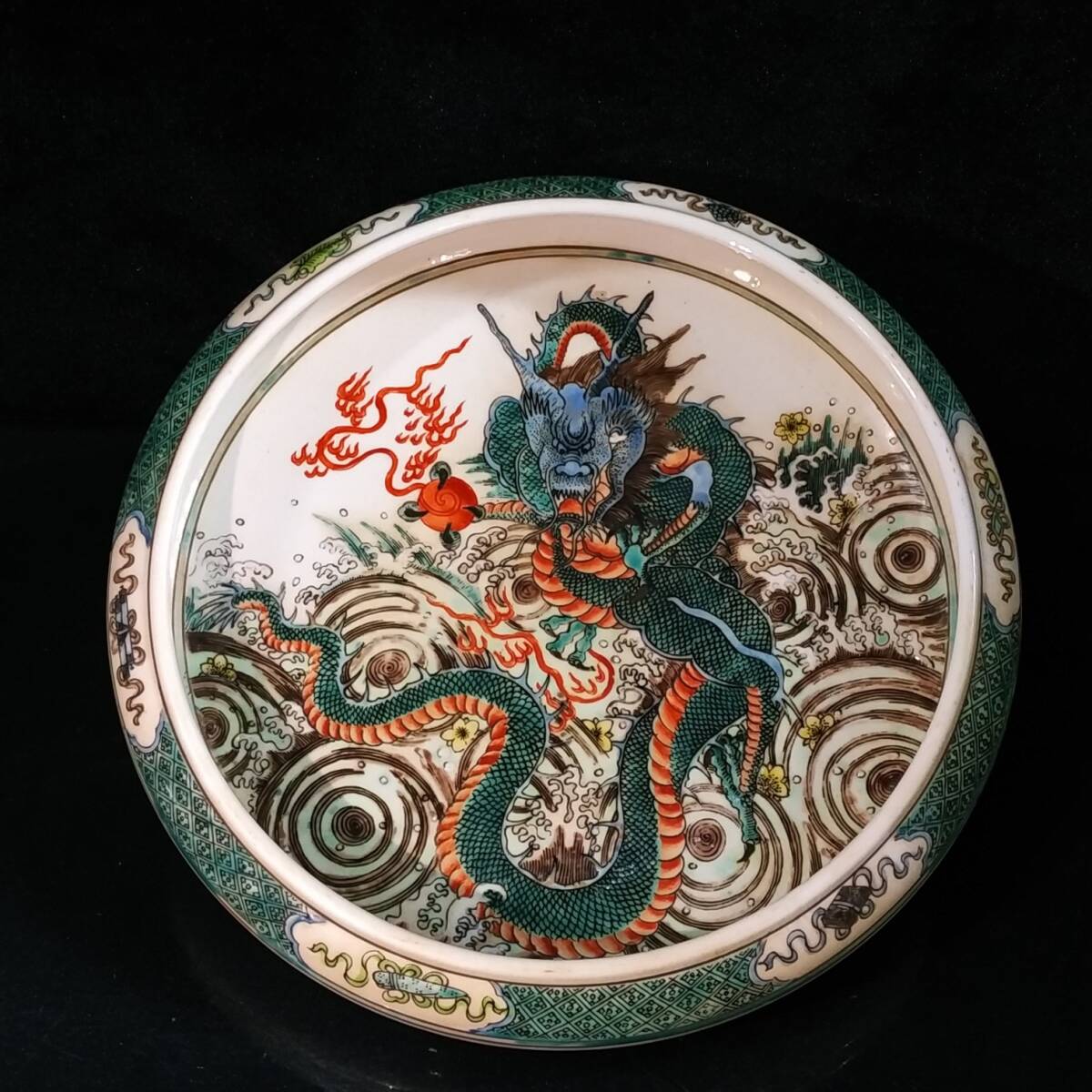 > yfa|1245 中国磁器 陶芸 磁器『大清康熙パステル彩手画竜紋筆洗』施釉陶 古代工芸品 陶芸 精美彫 置物 收藏品