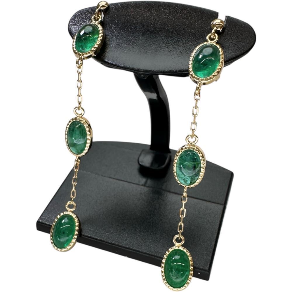 - カボションエメラルド 計3.07ct ピアス K18ゴールド 1.4g レディース