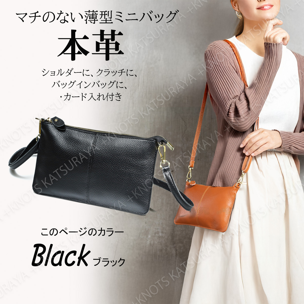 - 本革 薄い ミニショルダーポーチ★ブラック黒★サコッシュ お財布ショルダー ポシェット スマホポーチ 斜めがけバッグ ミニバッグa231