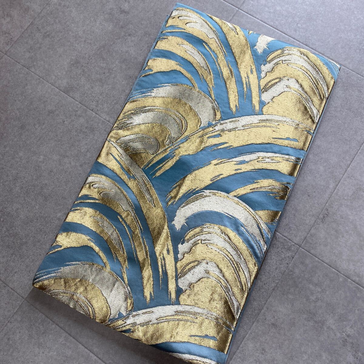 - アンティーク 袋帯 着物 薄青 金銀 波 昭和レトロ 大正ロマン モダン 和洋折衷コーデ リメイク 25こ24-24s