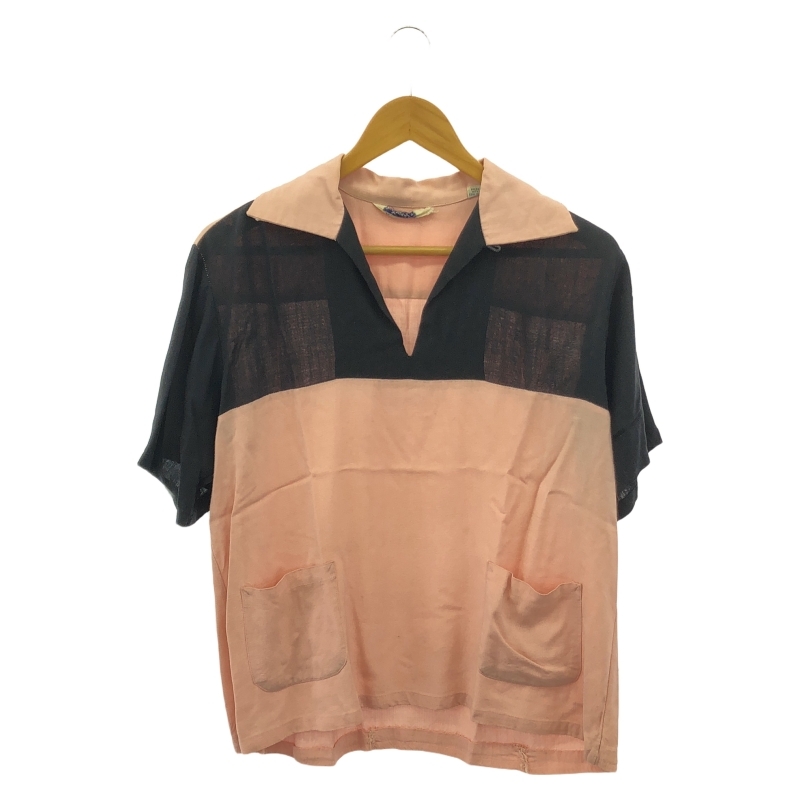 - 【中古】50s Siestawear プルオーバーギャバシャツ フロント2ポケット サイズM 黒 ピンク ボタン欠損 シエスタウェア[240017695094]