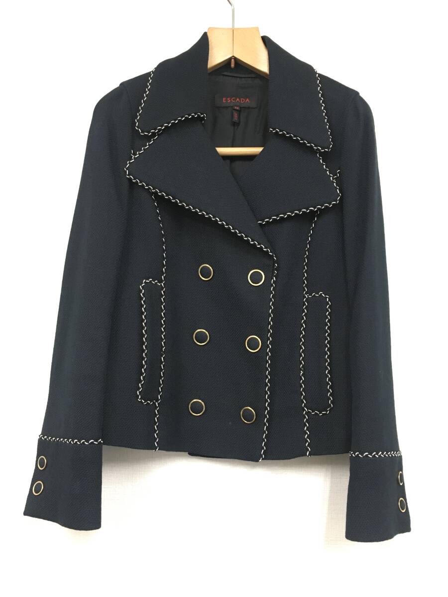 - ESCADA エスカーダ ショート ジャケット コットン100% ネイビー×ゴールド サイズ34