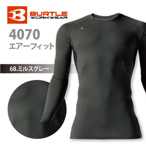 > バートル 春夏 インナー 長袖 メンズ 【 4070 】エアーフィット ■Lサイズ■ミルスグレー色 吸汗速乾 ≪ネコポス(ポスト投函)発送≫
