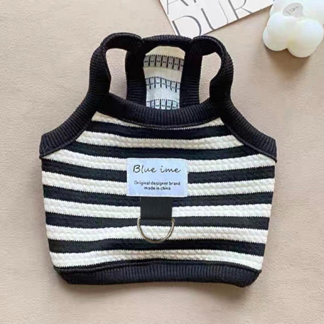 - Mサイズ 黒 犬服 ボーダー ストライプ タンクトップ ワンチャン 愛犬 ペット用品