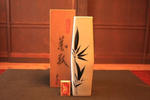 - 【新品未使用】★美品 花器『金鳳窯 手描き竹文花瓶』共箱あり★検:(初だし/陶磁器/伝統工芸/華道/生け花/花生け/贈答品/当時物)70203A
