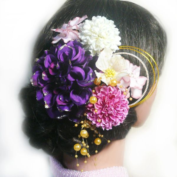 - 髪飾り 成人式 卒業式 結婚式 花 ダリアdpと花水木 紫 振袖 袴 和装 着物 かんざし