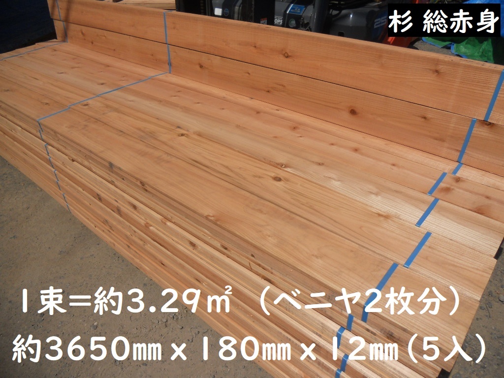 - 引取】1坪価格 杉 総赤身 特等3650X180X12mm/5枚束 建築下地材 野地板 フェンス 壁 鎧張り 木材 材料 素材 レッドシダー代用 国産杉 赤身