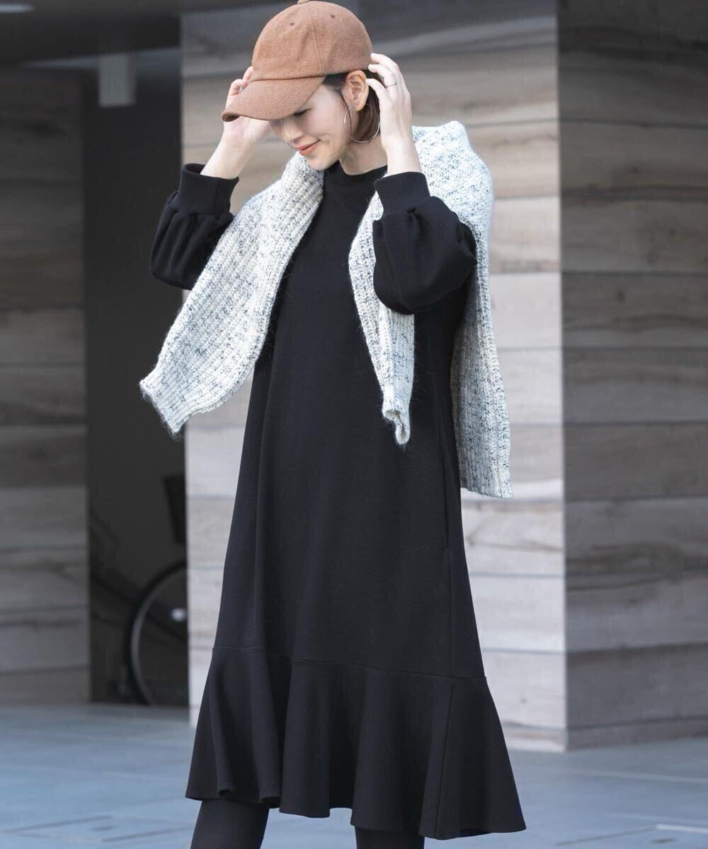 歩くと揺れる裾のフレアとボリュームスリーブが魅力のワンピースです 少し起毛感のあるしっかりとしたポンチ素材なので、フェミニンになりすぎず上品な印象で着て頂け、ショートブーツややロングブーツ、パンプスなど何でも合います 画像のようにカジュアルにも着こなせて本当にかわいいお品でおススメです
