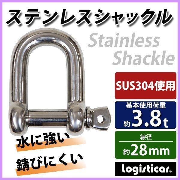> 送料無料 ステンレスシャックル JIS規格 ねじ込みタイプ M28 線径約28mm 開口約58mm 使用荷重約3.8t 約3800kg SUS304 JIS ステンレス製
