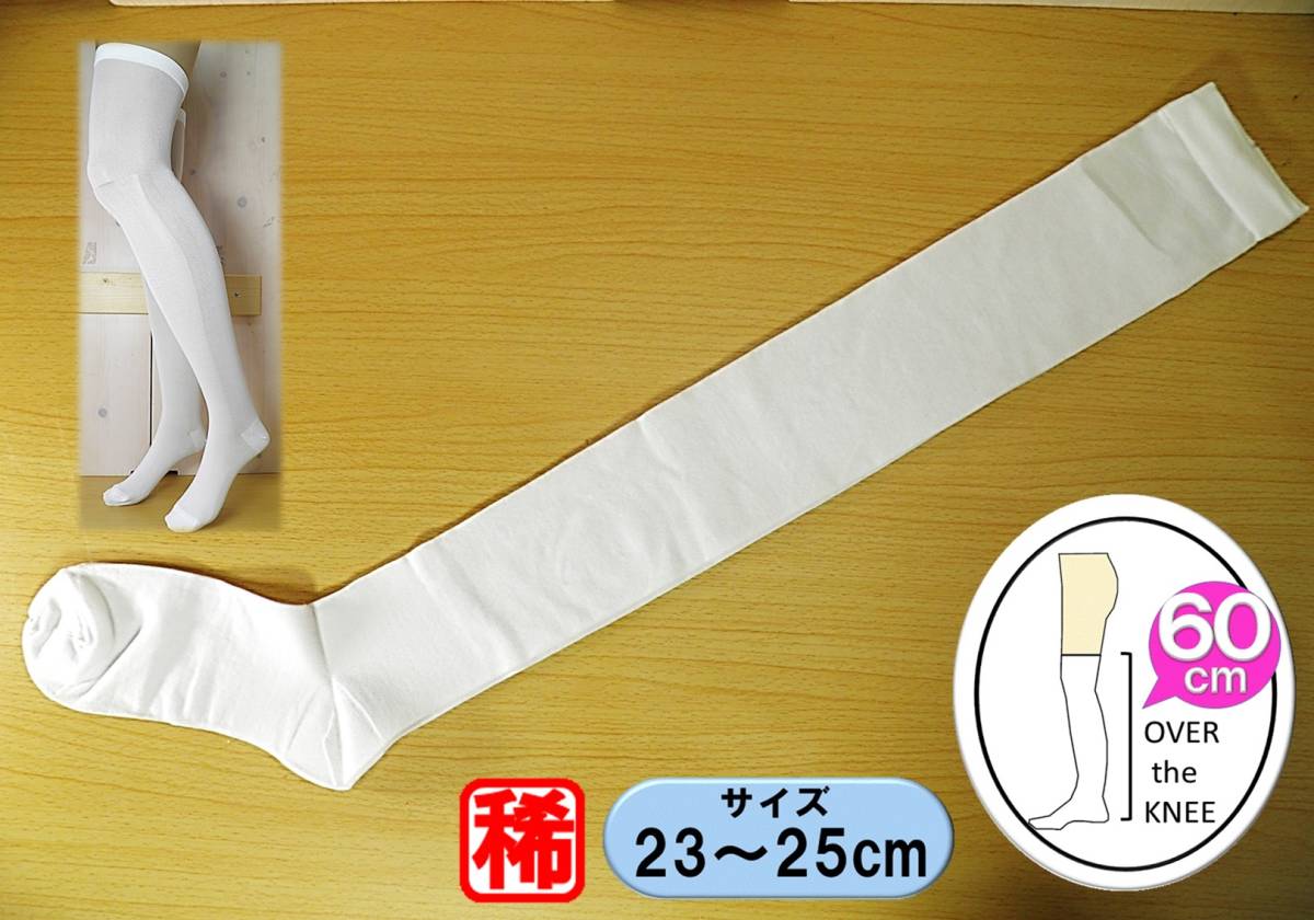 > 【未使用品★レッグウェア】超ロング60cm丈◆平編み 滑らか◆白 オーバーニー ハイソックス◆23-25cm◆透け感あり◆稀少◆