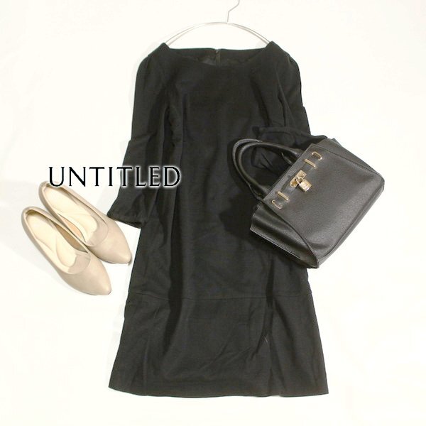 > 美品 UNTITLED アンタイトル 大人可愛い コットンストレッチ ワンピース 1号 S 春 秋 25C09