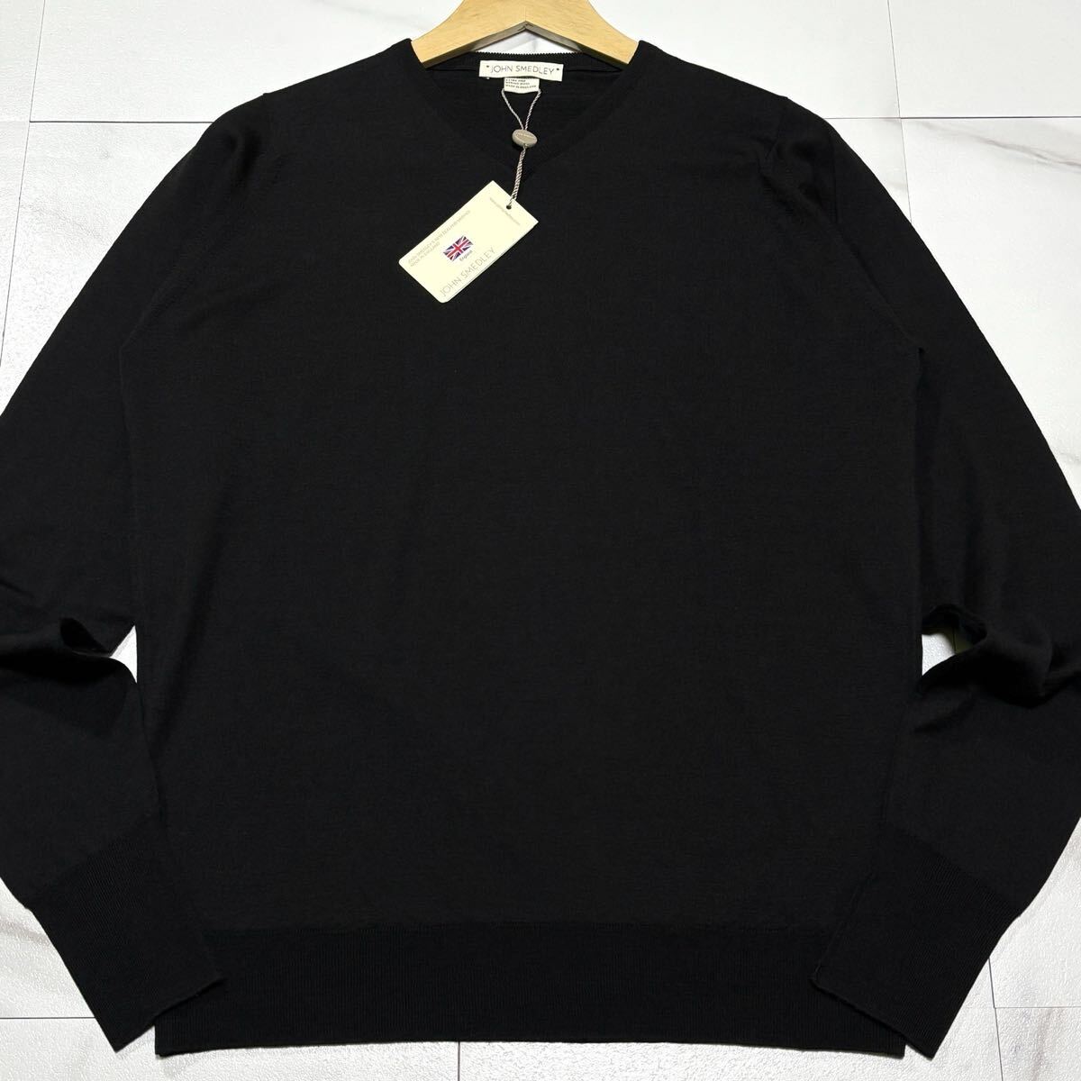 > 新品未使用品● JOHN SMEDLEY ジョンスメドレー ニット セーター 最高級メリノウール イギリス製 ブラック 黒 Mサイズ