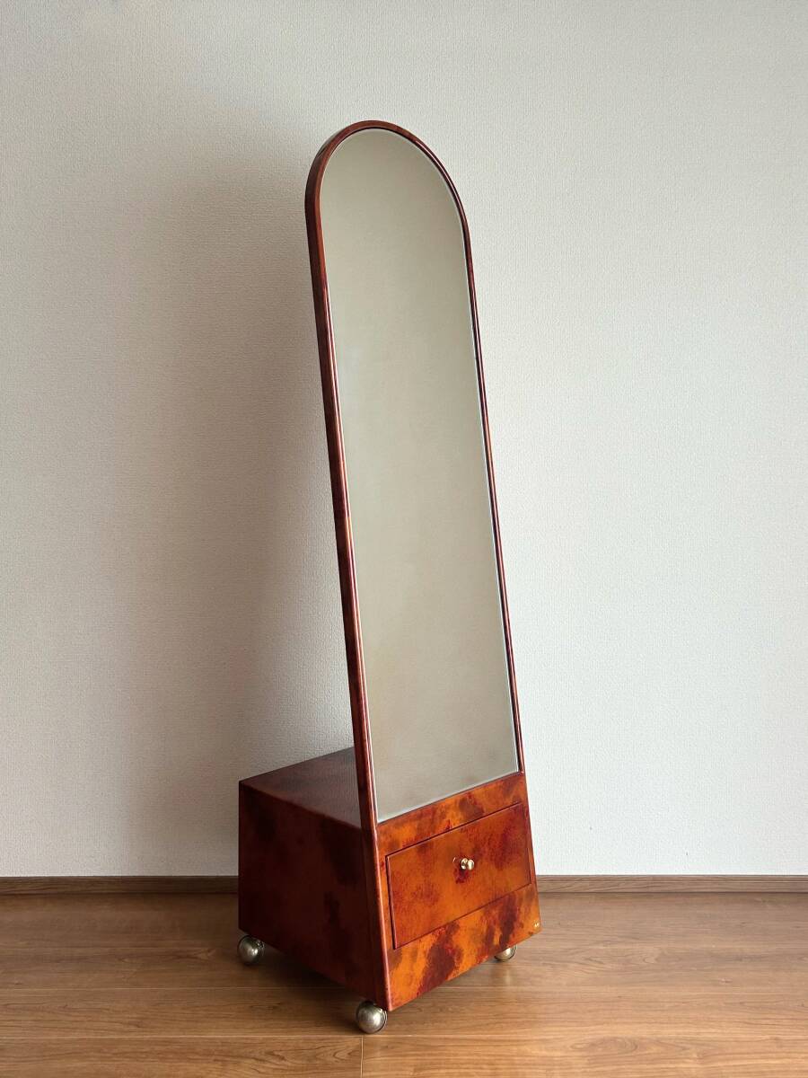 - Kit Furniture 北谷家具 皇室御用達 キットファニチャー 仔山羊革張り キャスター付き スタンドミラー|姿見 全身鏡 イタリア 店舗什器