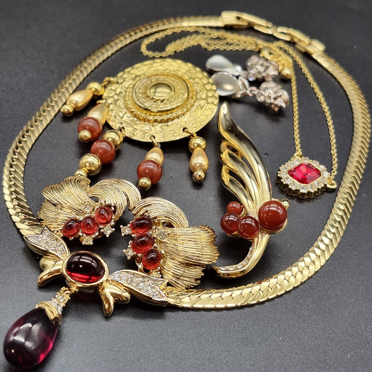 - 1円 NINA RICCI MONET D'ORLAN VENDOME ニナリッチ ドーラン モネ ヴァンドーム ネックレス イヤリング ブローチ カラーストーン レッド
