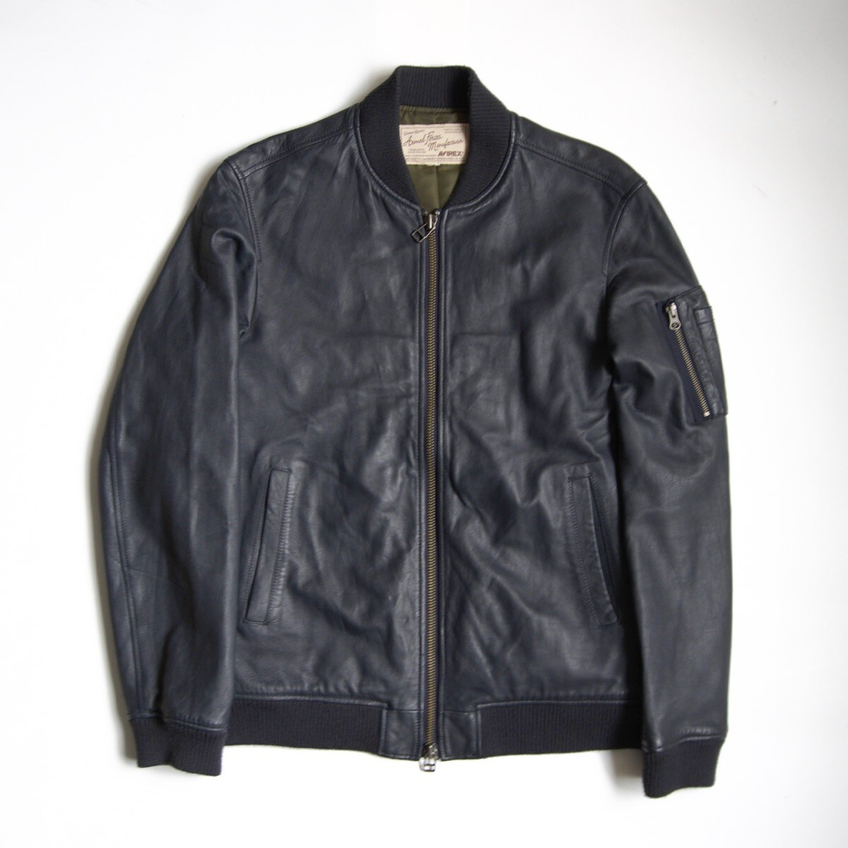 > 【美品】AVIREX【レザー MA-1 フライトジャケット】 ネイビー アヴィレックス 25100812