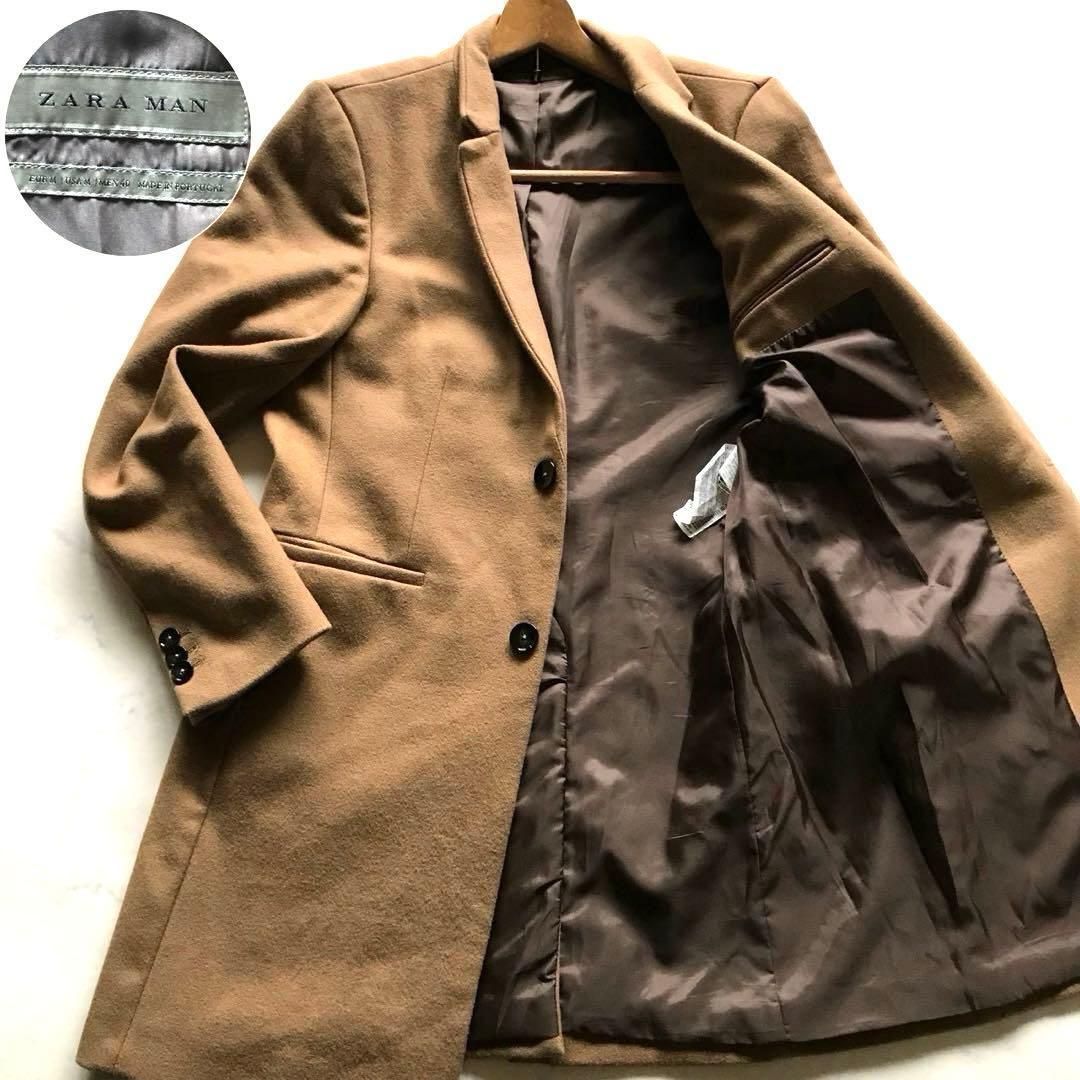 > 美品●ザラ ZARA チェスターコート ロング丈 起毛ウール 上品シルエット 【人気の好配色】キャメル メンズ 秋冬 ジャケット アウター 色気