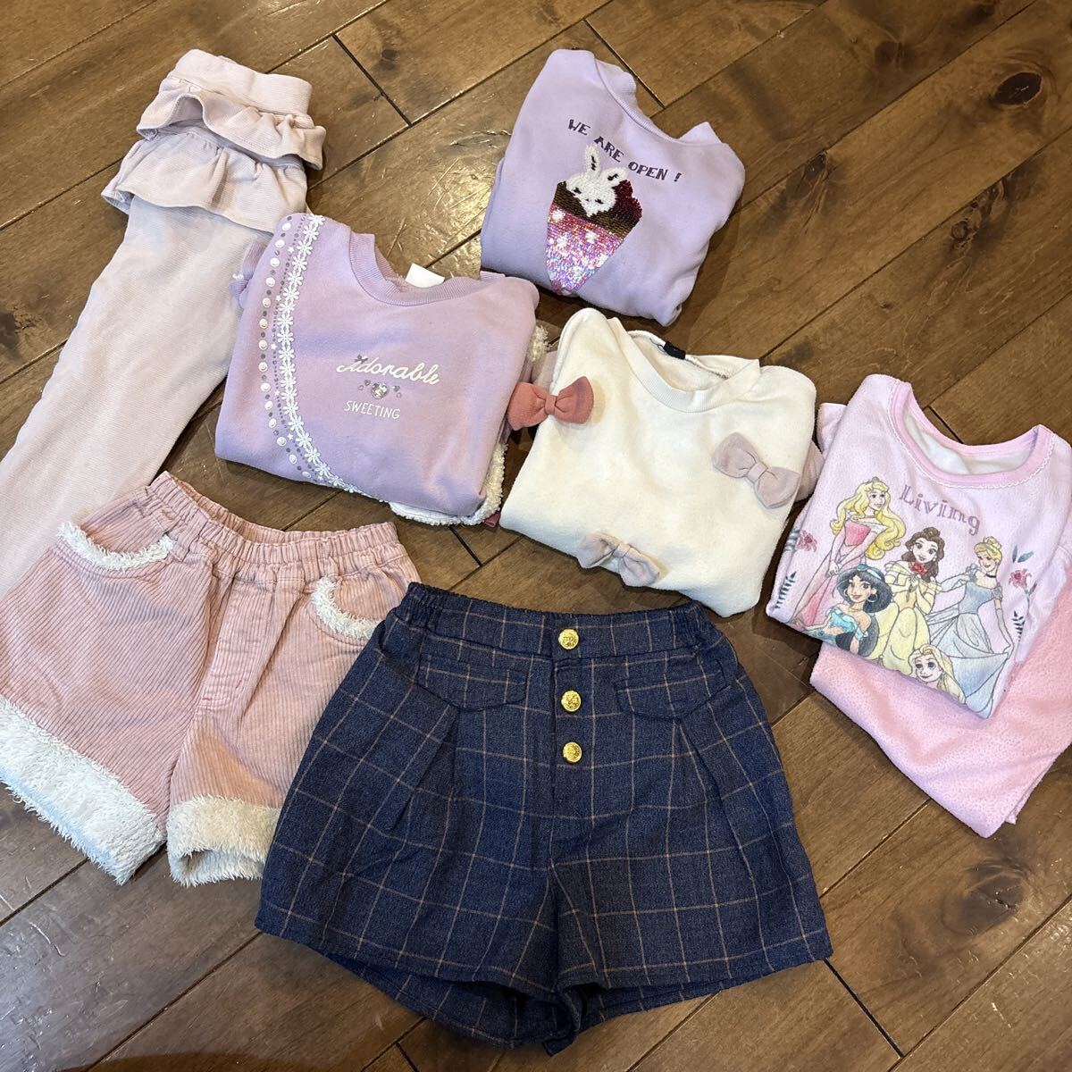- 120サイズ 女の子 子供服 裏起毛トップス ショートパンツ ボトムス パジャマ上下など8着セット