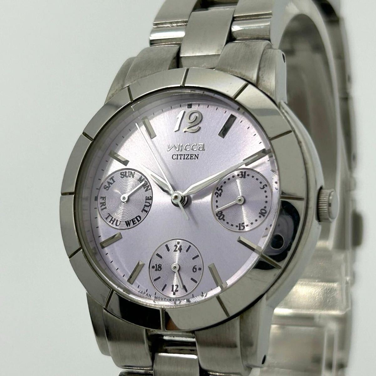 - 【稼働品/美品】CITIZEN Wicca シチズン ウィッカ ソーラー 腕時計 6329-S004942 パープル文字盤 シルバー デイデイト 24時間計 G1