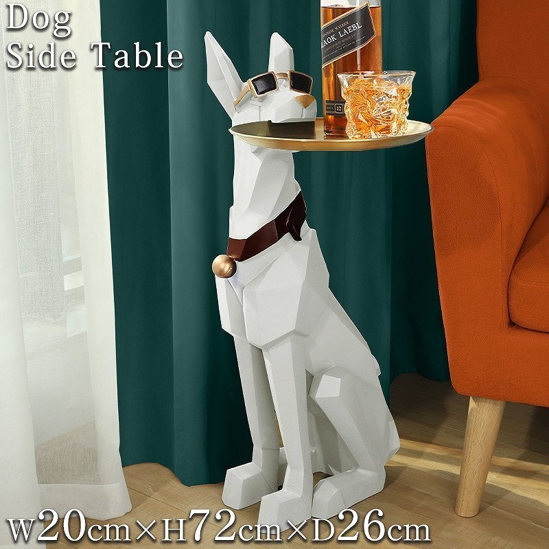 - サイドテーブル おしゃれ 北欧 テーブル ナイトテーブル アクセサリートレイ 収納 鍵置き 玄関 台 ソファ ベッド 高級 オブジェ 犬 UT-09WH
