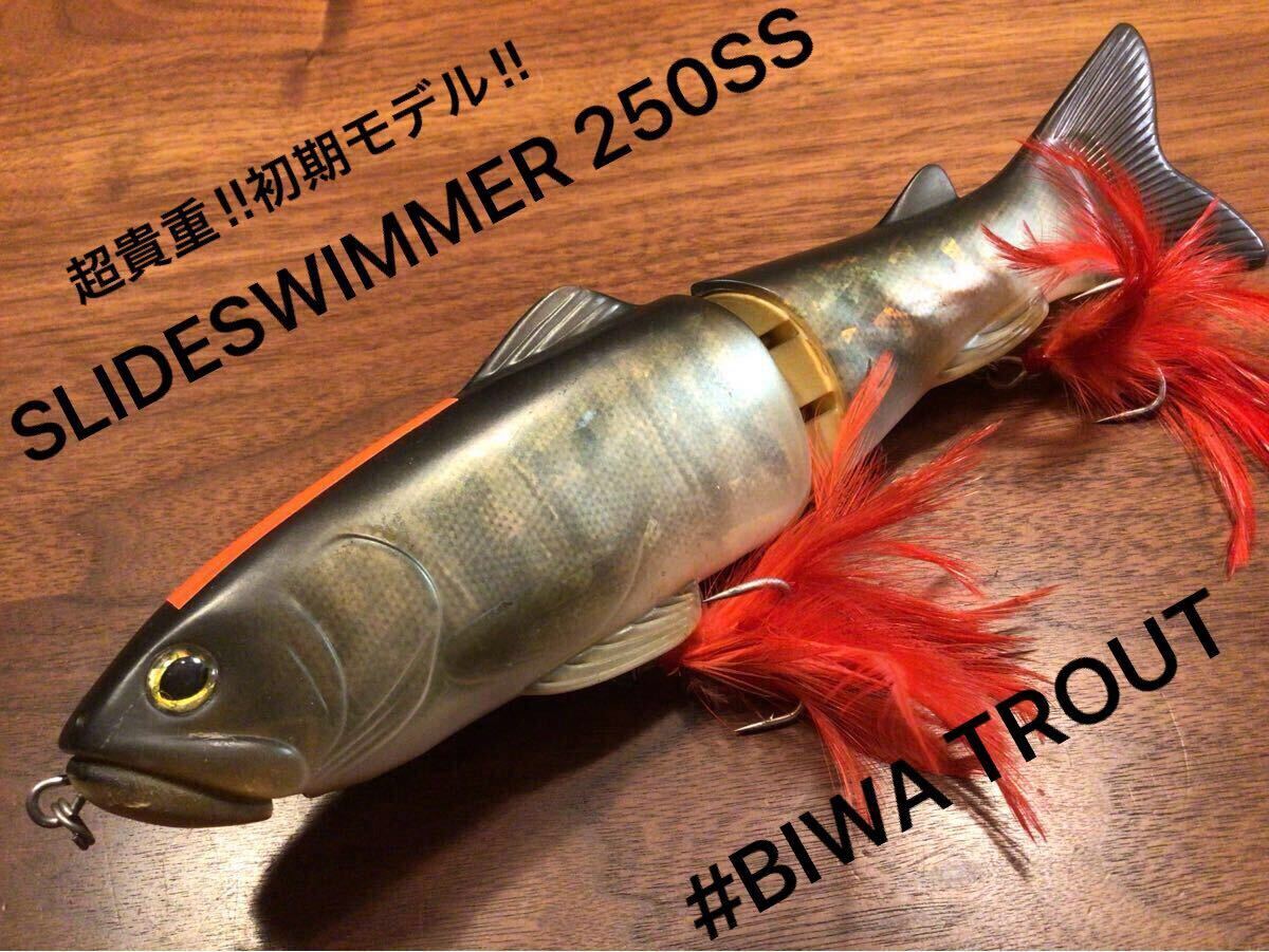 現在では廃番となり、カラー問わず非常に入手困難な初期モデルですが、この「ビワマス」というカラーは初期モデルのみで販売されたカラーでもあり、旧スライドスイマー250のカラーラインナップの中でも人気色で当時より入手困難だった大変希少なカラーでもあります。