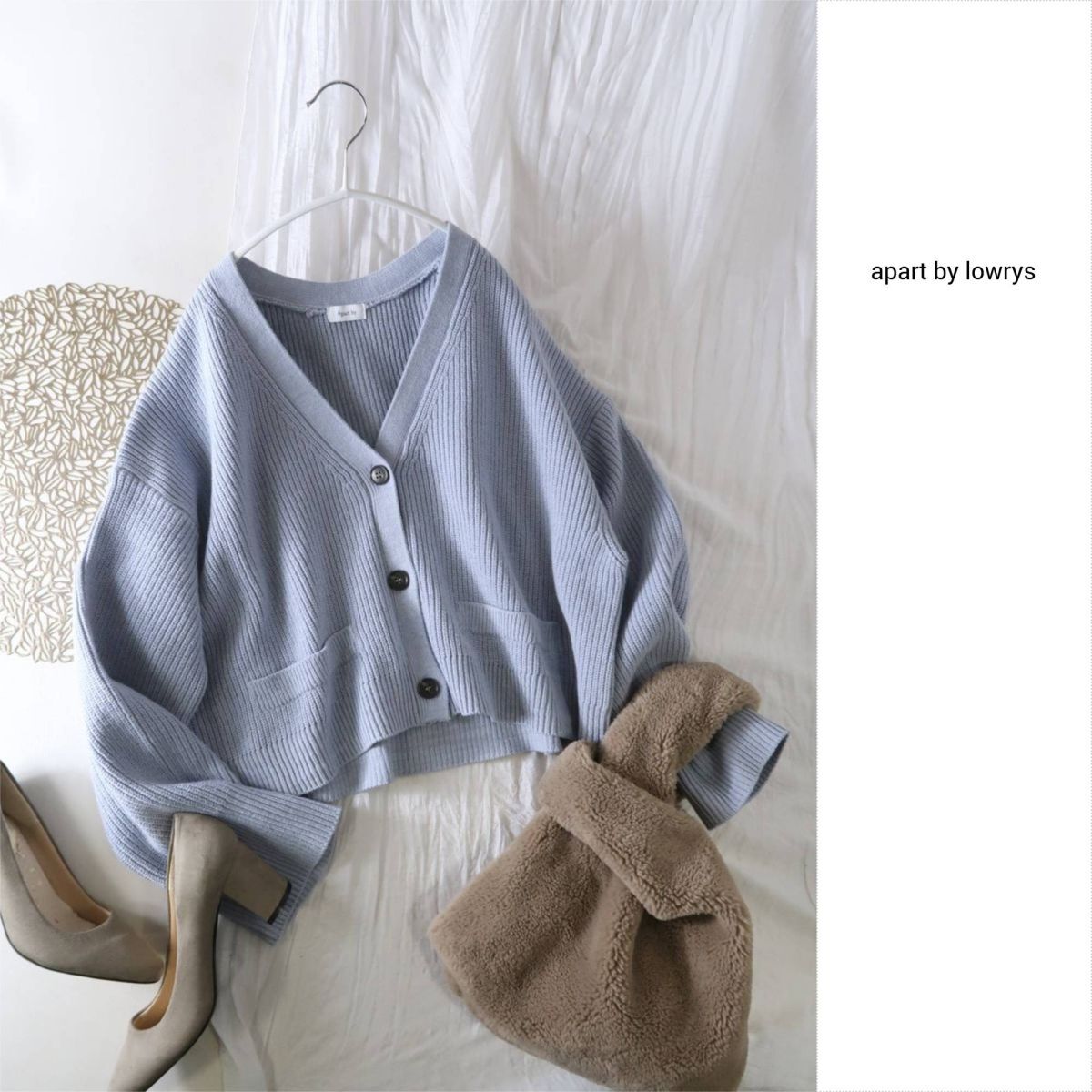 - 超美品☆アパート バイ ローリーズ apart by lowrys☆洗える アゼショートVネックカーディガン Fサイズ☆M-B 5831