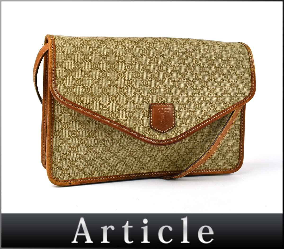 > 805654■ CELINE セリーヌ マカダム柄 2WAYショルダーバッグ クラッチバッグ セカンドバッグ バッグ PVC レザー 革 ベージュ ブラウン / B