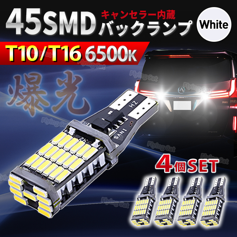 - T10/T16 兼用 LED バックランプ T15 ホワイト 白 爆光 シングル球 車検対応 バルブ 汎用 高輝度 ライト ウェッジ球 ルームランプ 12v 4個
