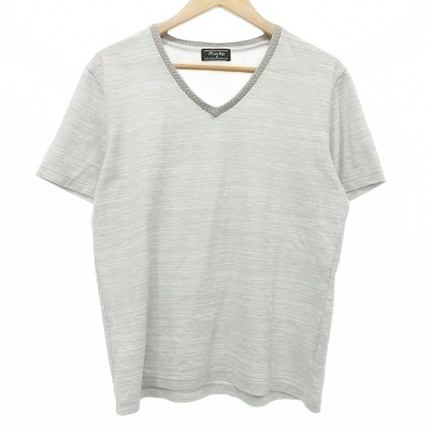 > メンズビギ MEN'S BIGI Vネック Tシャツ 半袖 総柄 カットソー M ライトグレー ■YHS8 メンズ