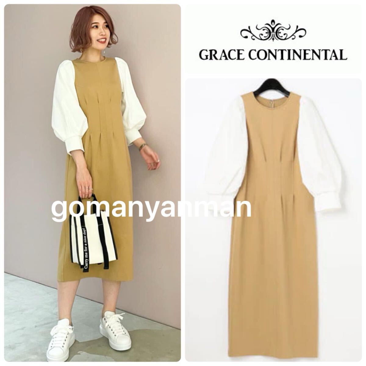 グレースコンチネンタル パフスリーブワンピース 3万3000円のお品 スタイリスト私物 ボディはストレッチが効いたポンチ素材を、袖はシャツ生地を使用したコンビネーションワンピースです