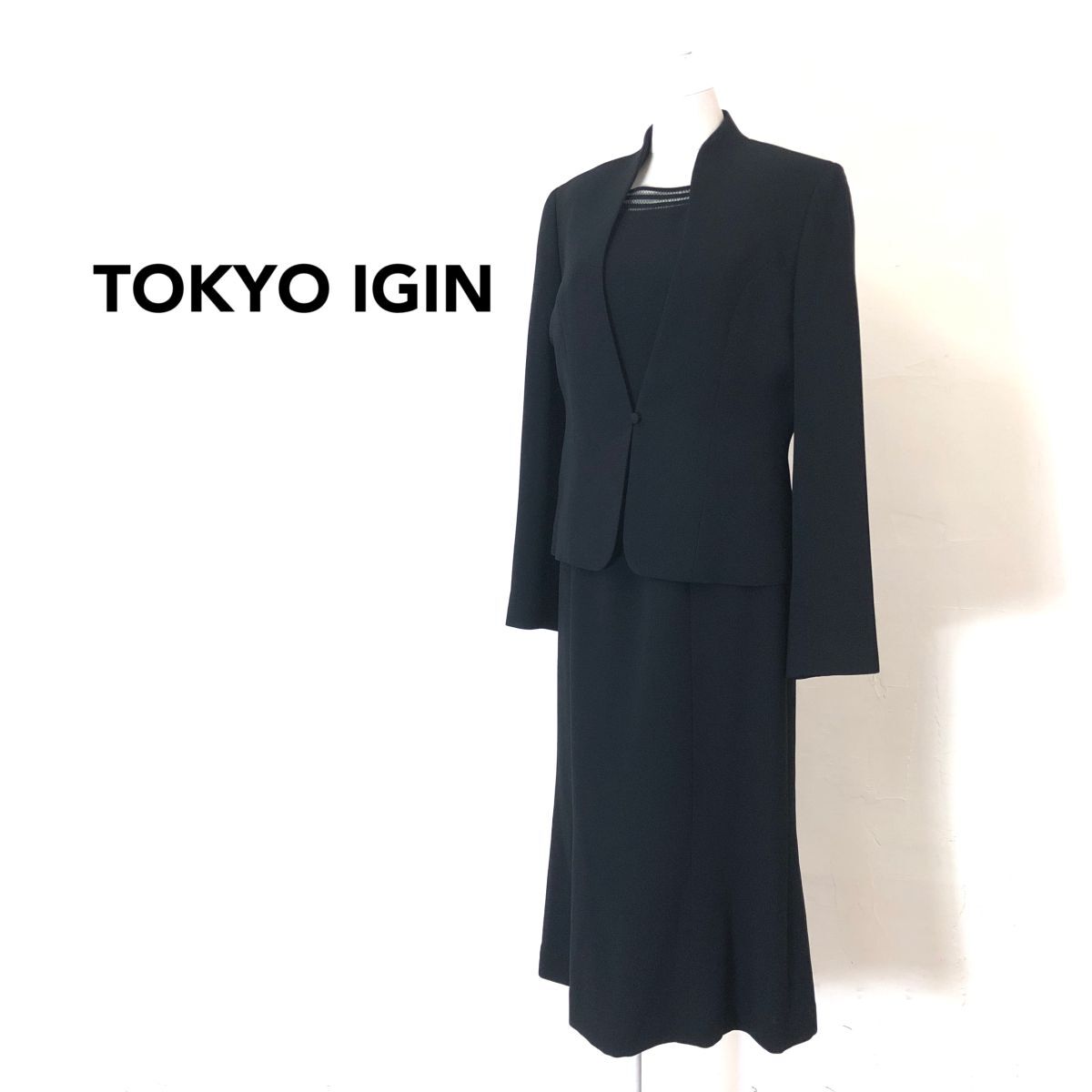 - 2O2933-Y-S◆TOKYO IGIN トウキョウイギン ブラックフォーマルワンピース アンサンブル ジャケット 冠婚葬祭 レディース ◆size7AR 黒 ポリ
