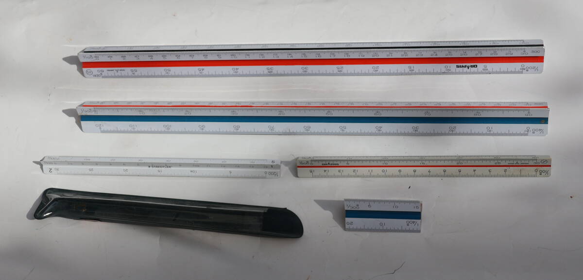 - 三角スケール 30cm x 2本 15cm x 2本 5cm x 1本 計5本 中古