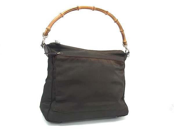 - 1円 GUCCI グッチ 000 2058 0509 5 バンブー ナイロンキャンバス ワンショルダーバッグ 肩掛け レディース ブラウン系 BQ1935