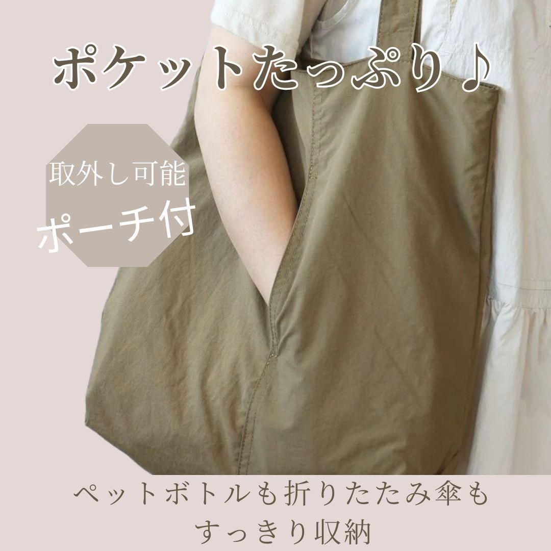 - ナイロン トートバッグ カーキ A4可 ポーチ付き 大容量