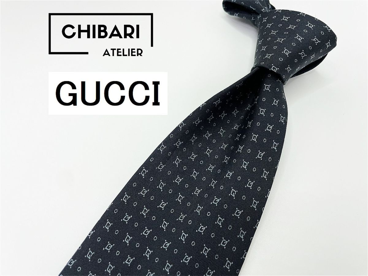 - 【超美品】GUCCI グッチ Gロゴ&ドット柄 ネクタイ 3本以上 送料無料 メンズ ブラック 1円 1002041