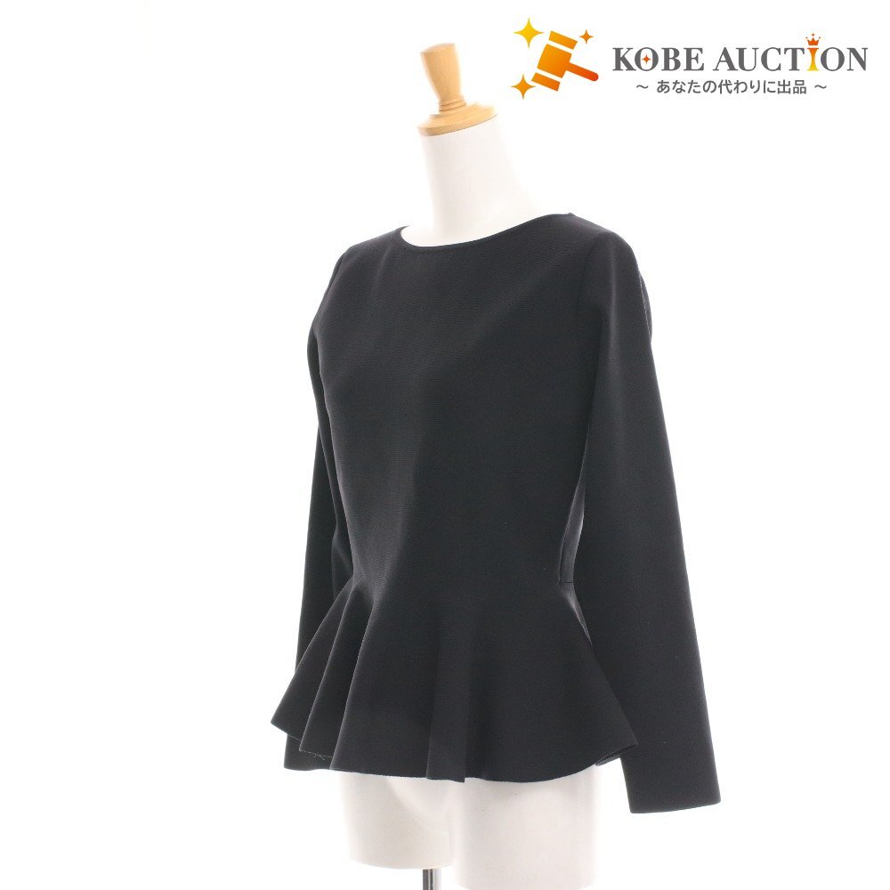 > ■ エムズグレイシー ペプラムトップス 長袖 MK-118707 トップス リボン グログラン スリット レディース 40(L相当)タグ付き ブラック