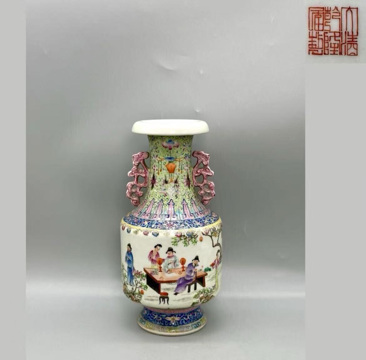 - 手描人物図 粉彩 花瓶 花器 花入 壺 古美術 時代物 中国美術 骨董品 色絵 置物 唐物 高さ約23cm